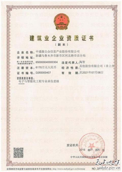 3.1 一级资质 可承担各类型电子工程、建筑智能化工程施工。