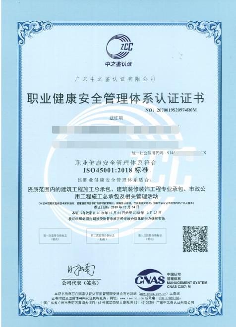 (10)通过第三方评审,取得职业健康与安全管理体系认证证书,并对外公告与有关标准